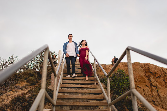 After graduating and dating for a year, we moved to San Diego. Three apartments and one puppy later he finally proposed! Alex's parents were visiting over Christmas last year and staying in a rental on Mission Beach. After Christmas Eve dinner, Alex asked me if I wanted to go on a walk on the beach. It was 11:30pm, cold and drizzling.... this is when I started to think "This is it!" So even though it was crappy out, I was not letting anything ruin my moment! We walked down the beach and he told me he had one more present to give me, opened the box, and asked if I would marry him! I was shaking and speechless, but finally said "Yes!" "